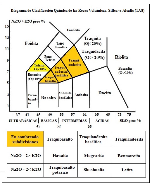 Con minerales de plagioclasas, piroxenos, nefelinas y xenolitos de peridotita.